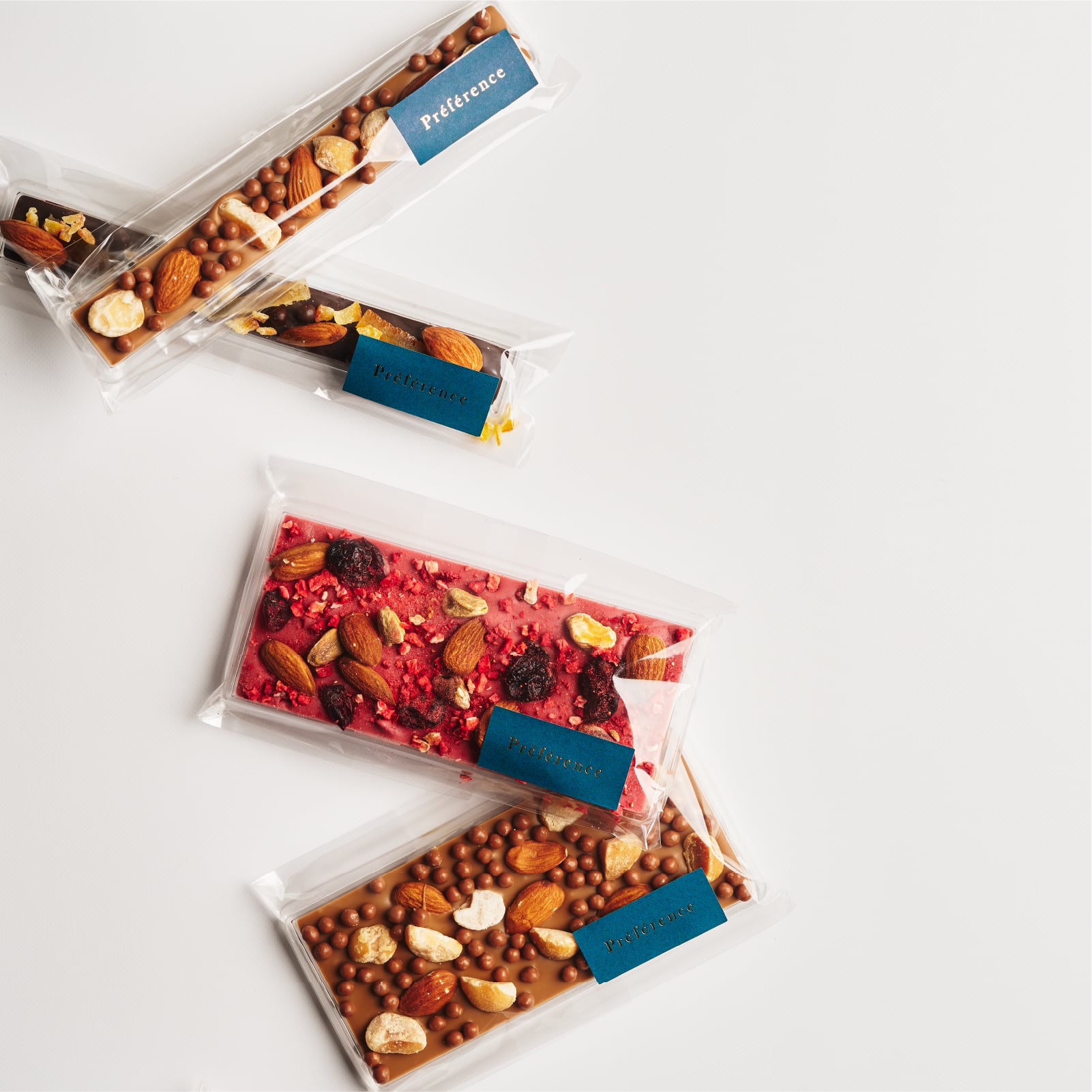 ブロンズチョコレート、マカダミアナッツ、アーモンド、パールショコラ